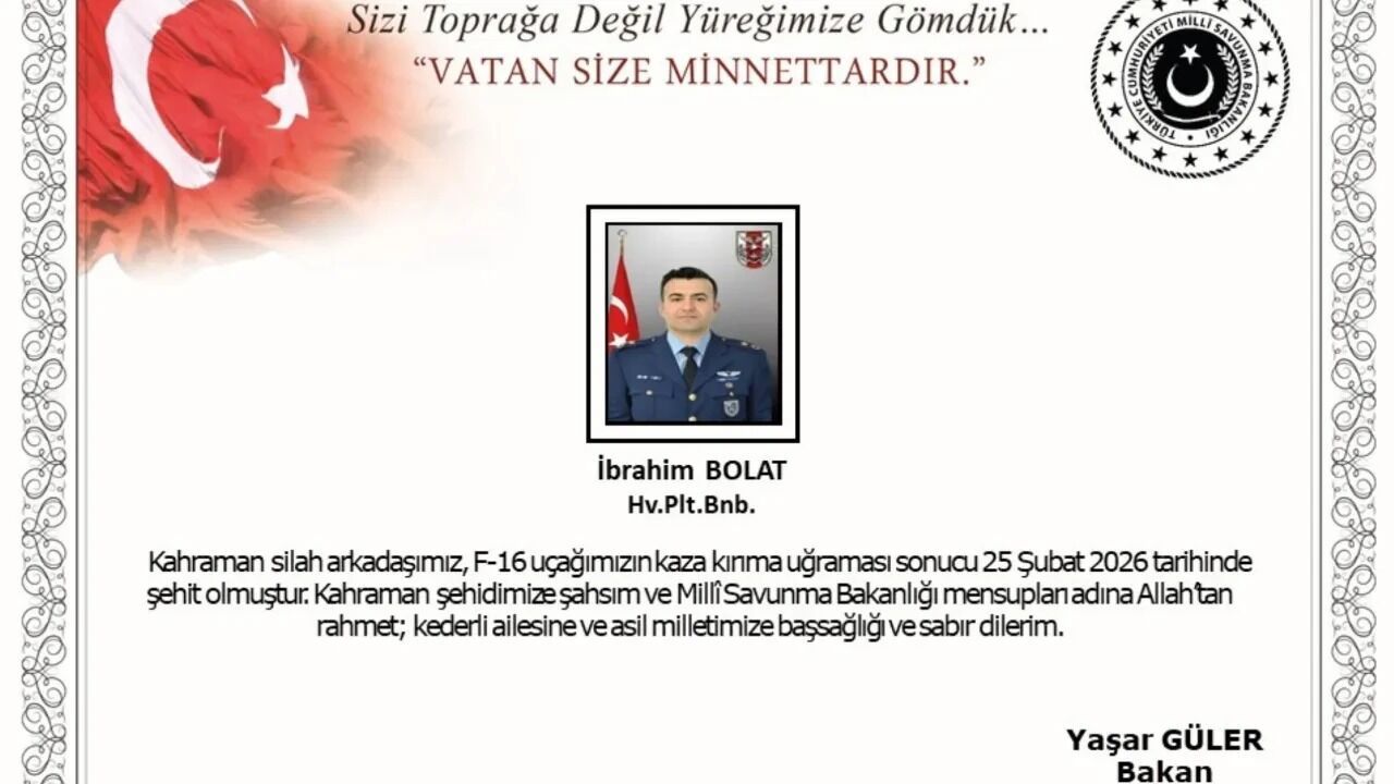 Türkiye, Balıkesir’den gelen acı haberle yasta. 9. Ana Jet Üssü Komutanlığı’na ait bir F-16 savaş uçağının eğitim uçuşu sırasında kaza kırıma uğraması sonucu, Hava Pilot Binbaşı İbrahim Bolat şehit oldu. Milli Savunma Bakanlığı (MSB) ve yerel makamlar, olayın detaylarını ve şehidimizin kimlik bilgilerini kamuoyuyla paylaştı.