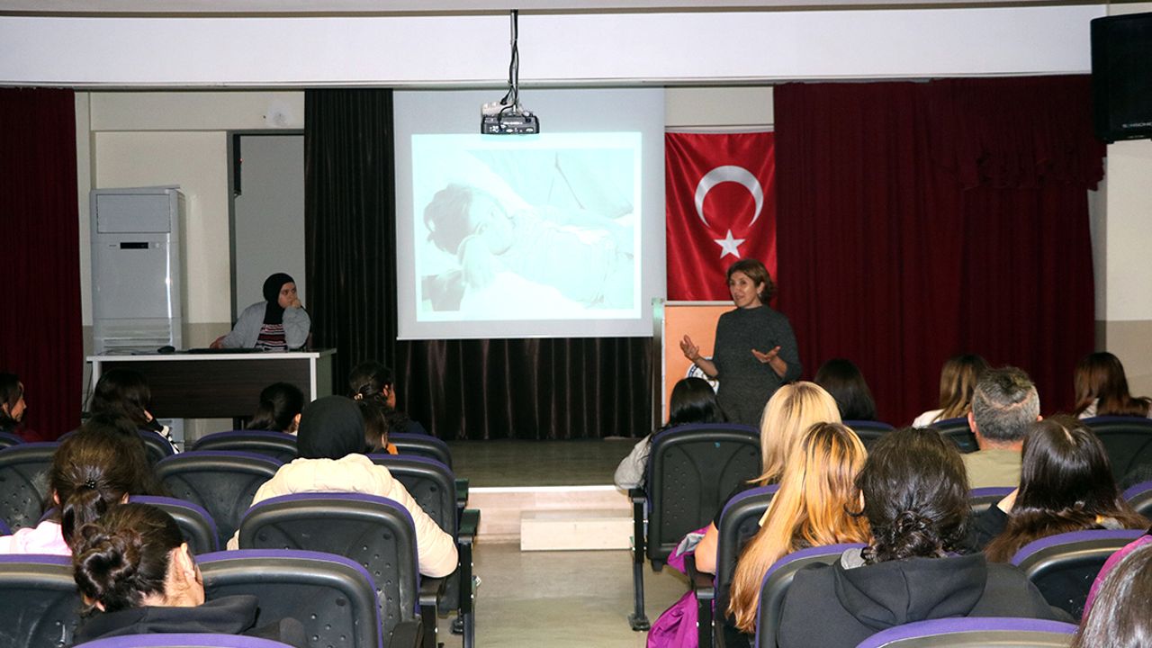 Buca İlçe Sağlık Müdürlüğü’nde görevli Hemşire Zeynep Sinan Canpolat, okulun konferans salonunda 9. sınıf öğrencilerine yönelik kapsamlı bir bilgilendirme sunumu gerçekleştirdi.
