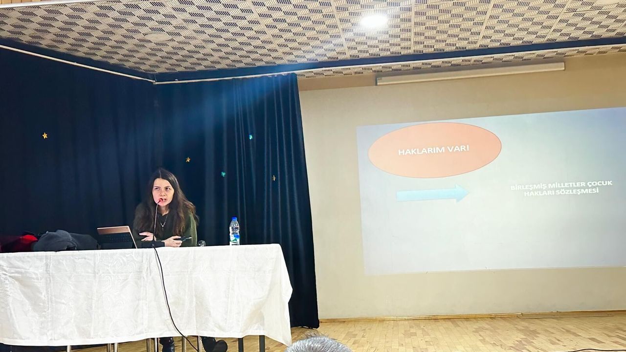 Bu bağlamda okulumuz psikolojik danışmanı Merve Sezen’in İzmir Barosu Çocuk Hakları Merkezi ile yapmış olduğu iş birliği ile öğrencilerimiz “Çocuk hakları, güvenli internet kullanımı, akran zorbalığı, siber zorbalık, internet veya gündelik hayatta karşılaşılabilecek tehditlerde başvurabilecekleri destek kaynaklar hakkında bilgilendirilmiştir.