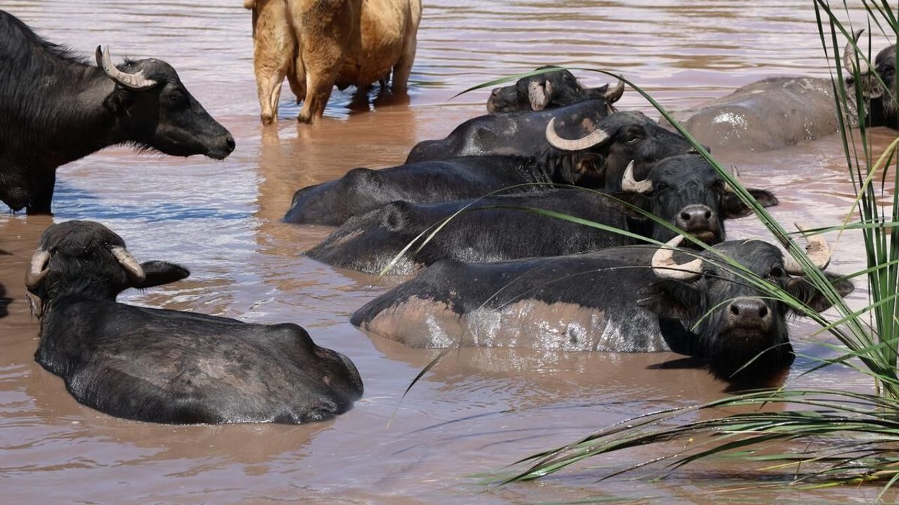 Sivas’ta mevsim normallerinin üzerinde seyreden hava sıcaklıkları mandaları da bunalttı. Serinlemek için sulak alan arayan mandalar çareyi Kızılırmak’ın serin sularında buldu.