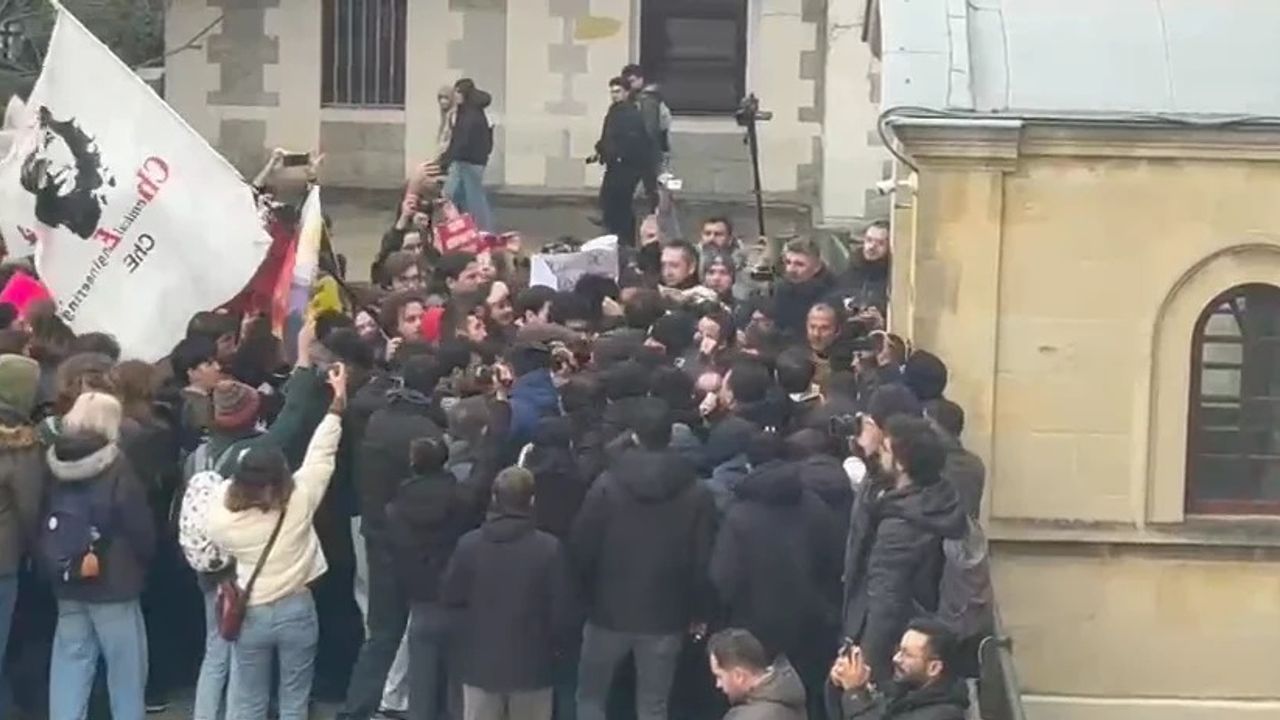 Üniversite önünde toplanan öğrencilere polis tarafından “Yaptığınız eylem kanunsuzdur” şeklinde anons yapıldığı aktarıldı. Ardından bazı öğrencilere biber gazı kullanıldığı bildirildi.