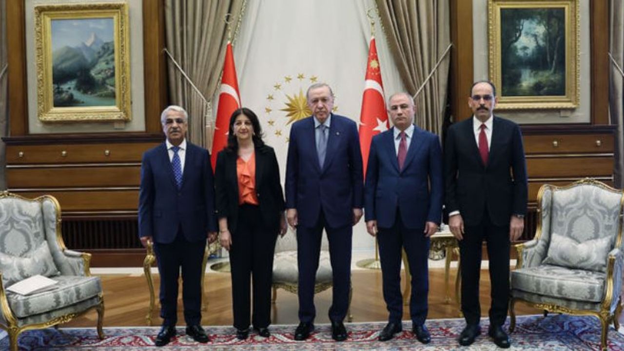 Cumhurbaşkanı Erdoğan, İmralı Heyeti’ni ilk kez 10 Nisan’da Saray’da kabul etmişti. O görüşmede hayatını kaybeden Sırrı Süreyya Önder ile Pervin Buldan yer almıştı. Toplantı 1 saat 25 dakika sürmüştü.