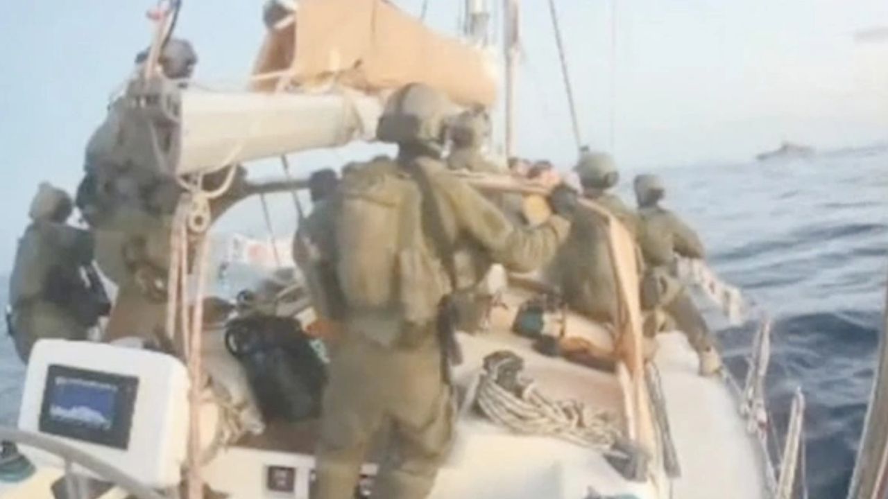 Filo’nun internet sitesinde yayımlanan canlı yayında, Captain Nikos gemisindeki aktivistlerin alıkonulmasının ardından silahlı İsrail askerlerinin gemiye girdiği anlar paylaşıldı.