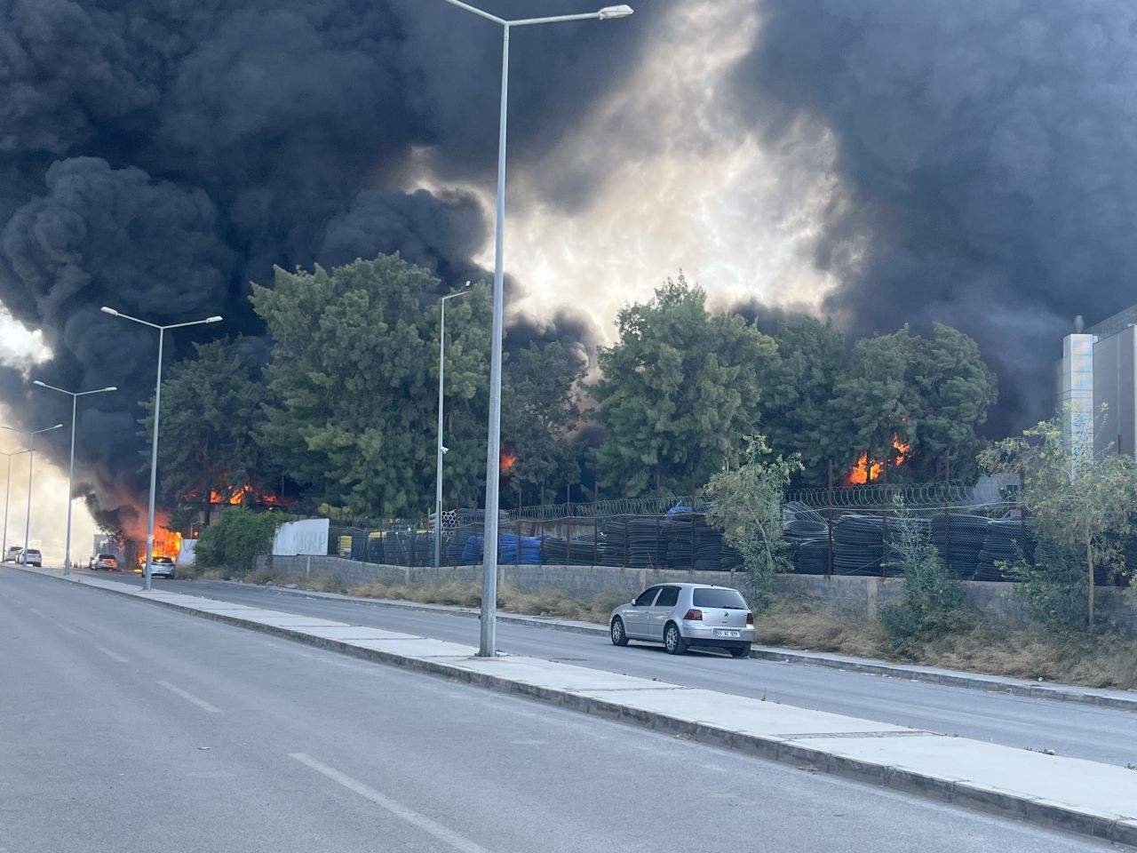 İzmir’in Konak ilçesinde, Medicana Hastanesi yakınlarında bir plastik fabrikasında yangın çıktı. Yangın sırasında patlamalar yaşanırken, itfaiye ekiplerinin alevlere müdahalesi sürüyor. pic.twitter.com/5lUq155Alb