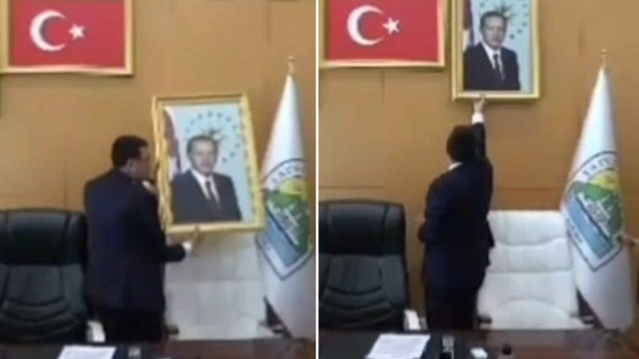 DEM Partili Mümin Erol, 31 Mart yerel seçimlerinin ardından mazbatasını alarak göreve başladığı ilk gün, makam odasında bulunan Cumhurbaşkanı Recep Tayyip Erdoğan’ın fotoğrafını kaldırmıştı.