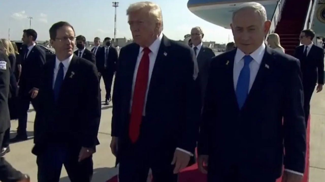 ABD Başkanı Donald Trump, Gazze'de varılan ateşkesin ardından kısa süreli bir ziyaret için İsrail’e geldi. Tel Aviv yakınlarındaki Ben Gurion Havalimanı’nda resmi törenle karşılanan Trump’ı İsrail Cumhurbaşkanı Isaac Herzog, Başbakan Binyamin Netanyahu ve çok sayıda bakan karşıladı. Ziyaret, 4 saatten az sürecek şekilde planlandı.