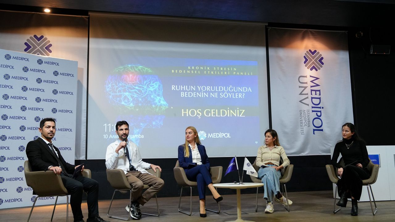 Medipol Mega Üniversite Hastanesi Konferans Salonu'nda gerçekleştirilen panelin moderatörlüğünü Ruh Sağlığı ve Hastalıkları Uzmanı Doç. Dr. Taha Can Tuman üstlenirken, Prof. Dr. Mehmet Ağırman, Doç. Dr. Buse Çağla Arı, Uzm. Dr. Sena İnal ve Uzm. Dr. Rahime Gök kronik stresin vücuttaki etkilerini farklı disiplinlerden değerlendirdi.