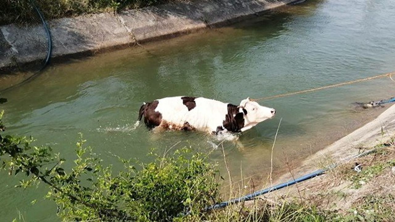 Antakya ilçesi Narlıca Mahallesi’nde otlanan inek, sulama kanalına düşerek mahsur kaldı. İneğin çırpınışını gören sahibi durumu 112 Acil Çağrı Merkezi’ne bildirdi. İhbar üzerine olay yerine Hatay Büyükşehir Belediyesi itfaiye ekipleri sevk edildi. Kısa sürede bölgeye gelen ekipler, ineği kurtarmak için çalışmalara başladı. Halatların ineğe bağlanmasının ardından kepçe yardımıyla inek mahsur kaldığı yerden kurtarıldı. Sulama kanalından kurtarılan inek, ekipler tarafından sahibine teslim edildi.