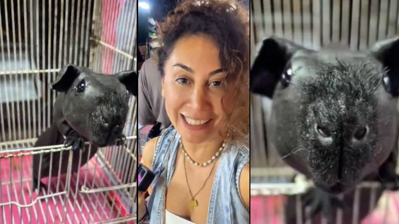 Gezginin paylaştığı videoda, kafeste bulunan ve tüysüz yapısıyla dikkat çeken küçük bir memeli hayvan yer alıyor. Hayvanın, evcil kemirgen türleri arasında bulunan tüysüz ginepig cinsi olduğu tahmin ediliyor.