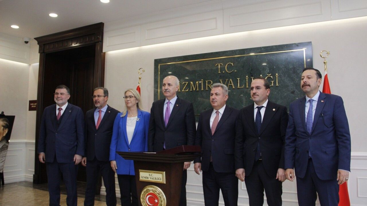 Türkiye Büyük Millet Meclisi (TBMM) Başkanı Numan Kurtulmuş, İzmir Valiliği'ni ziyaret etti. Burada polis tören mangası tarafından karşılanan TBMM Başkanı Kurtulmuş'a, İzmir Valisi Süleyman Elban eşlik etti. Valilik şeref defterini imzalayan Kurtulmuş, daha sonrada İzmir İktisat Kongresi Binası'na geçerek sivil toplum buluşmasına katıldı.