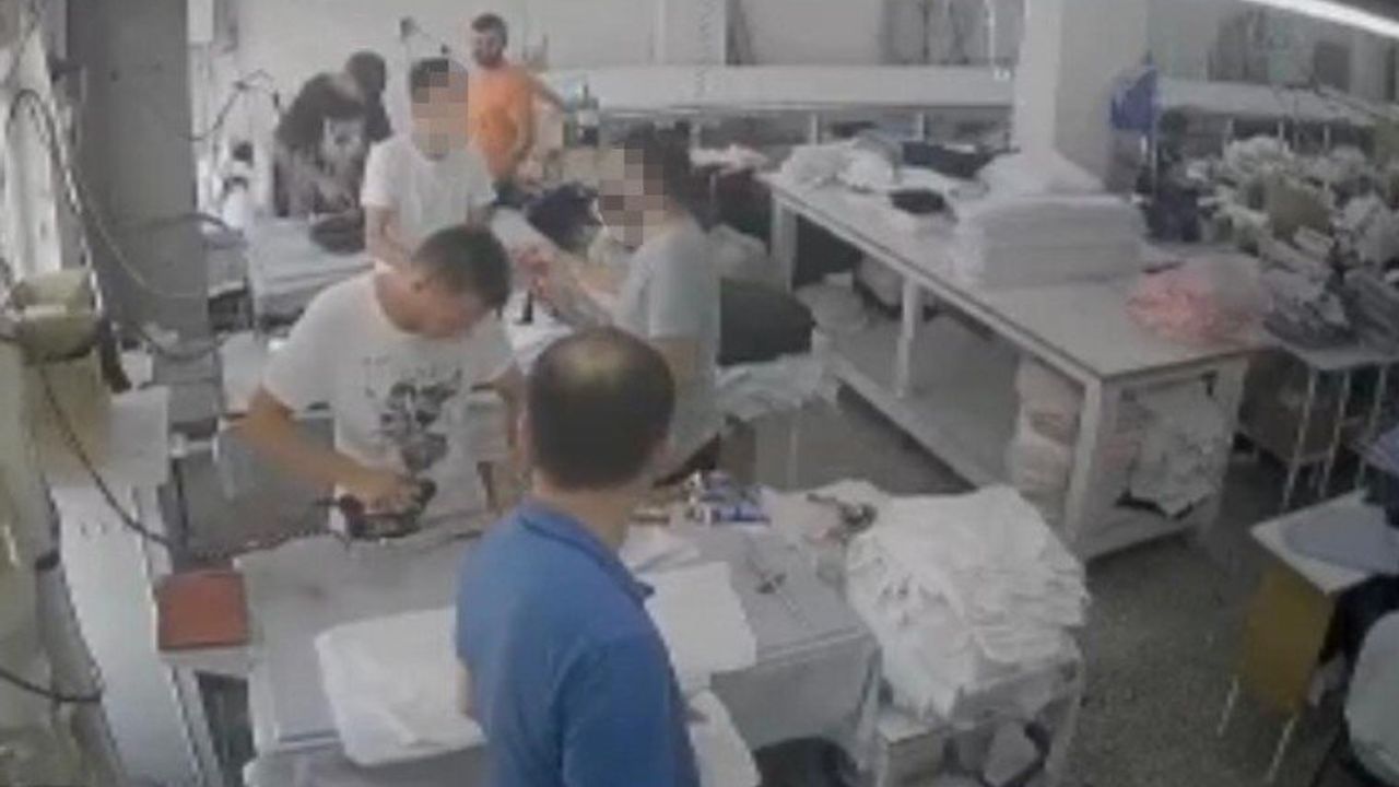İşçilerden birisinin tartışma esnasında diğer işçinin yüzüne kumaş fırlatmasıyla birlikte alevlenen kavgayı iş arkadaşları güçlükle sakinleştirdi. Yaşananlar atölyenin güvenlik kamerasına anbean yansıdı.