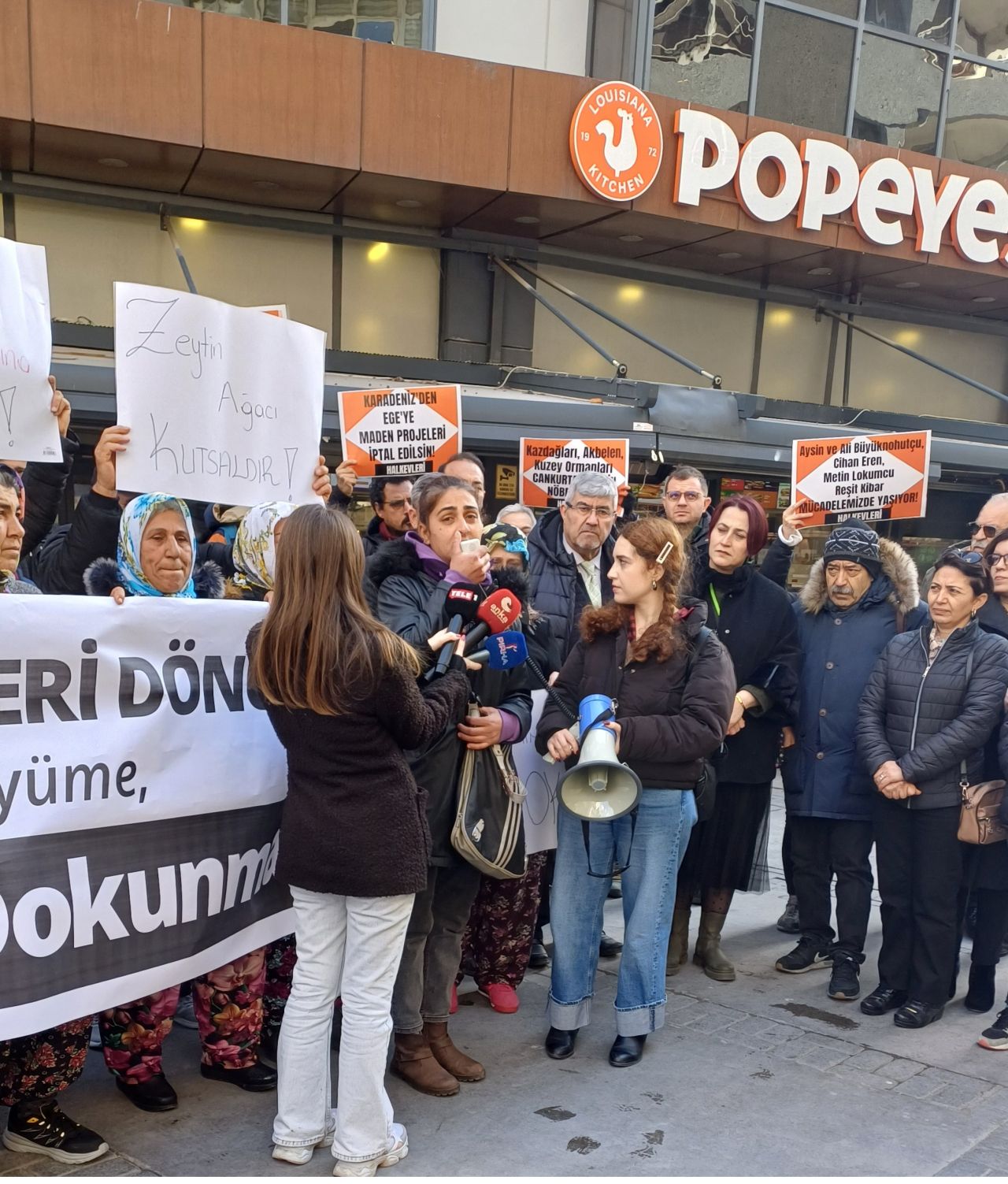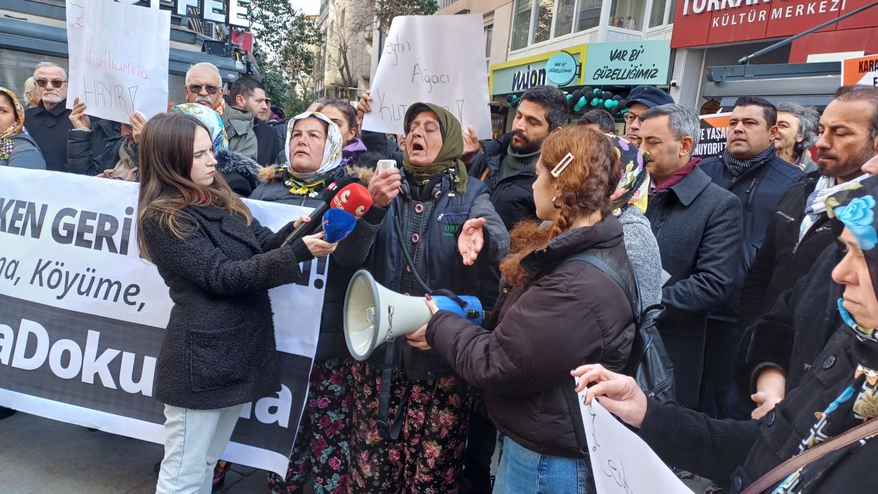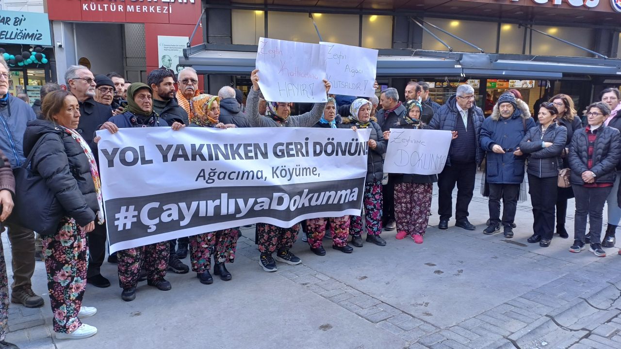 Ellerinde dövizler ve sloganlarla ağaçlarına sahip çıkan köylüler adına il konuşmayı yapan Zehra Yıldırım, ağaçlarını korumak adına mücadele verdiklerini belirterek, "Yol yapmak için binlerce ağacı katledecekler. Biz zeytinleri, incirleri korumak için mücadele verirken, onlar çam ağaçlarını kesmeye başladı bile. Koruduğumuz ağaçlar fidan değil, hepsi 100-150 yıllık ağaçlar" dedi.