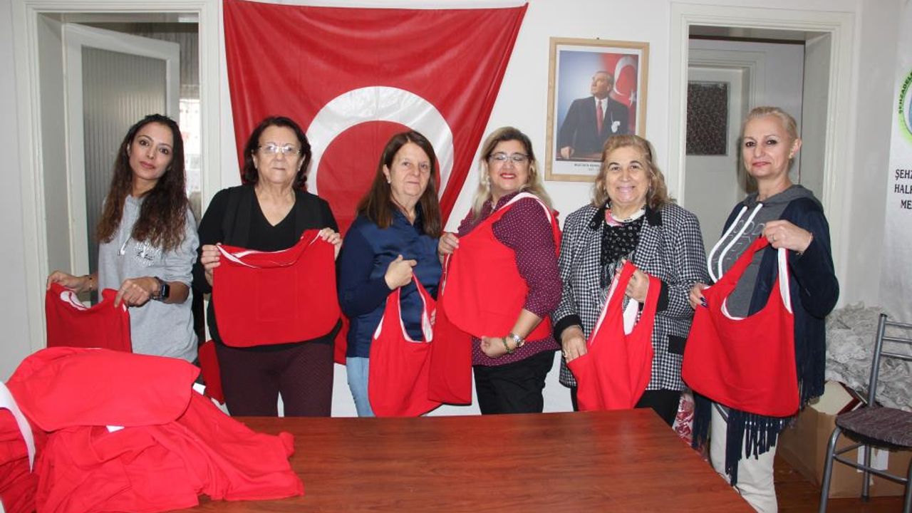 Yaptıkları çalışmayı da anlatan Çetinkaya, “Tişörtlerin bedenlerine göre küçük olanlardan kare, daha büyük tişörtlerden de yuvarlak çantalar yapıyoruz. Kullanılmış tişörtler de vardı bunların ziyan olmaması için değerlendirmeye karar verdik. Çantalardan kalan parçaları eski tişörtlerin içine doldurarak hayvan barınağına bağışlanmak üzere küçük yataklar yaptık” dedi.