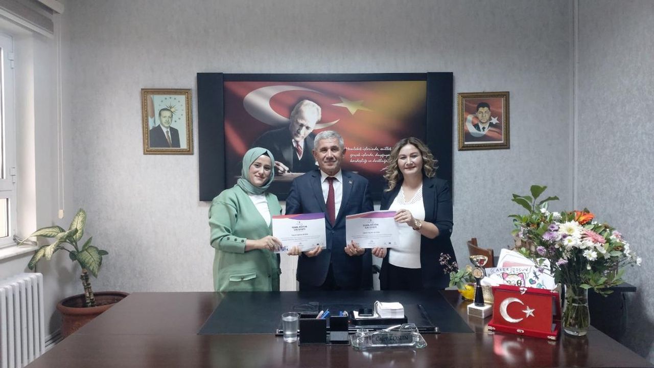 İlçe Millî Eğitim Müdürü Cafer Tosun, başarılı öğretmenleri makamında ağırladı. Cafer Müdür, “Öğretmenlerimizi ilçemizi gururlandıran bu başarılarından dolayı tebrik ediyor, yaptığı proje çalışmalarının iyi örnekler olarak çoğalmasını temenni ediyorum. Müdürlüğümüz özel büro biriminde görevli öğretmenlerimizle birlikte, ilçemizde kaliteli proje sayısını arttırmak, topluma örnek ve öncü olmak adına sürekli projeler geliştiriyoruz. Proje geliştirerek öğrencilerimizi yeni bakış açılarıyla buluşturan, emek veren bütün öğretmenlerimize de teşekkür ediyorum. İyi ki varsınız.” şeklinde tebriklerini ileterek başarılar diledi.