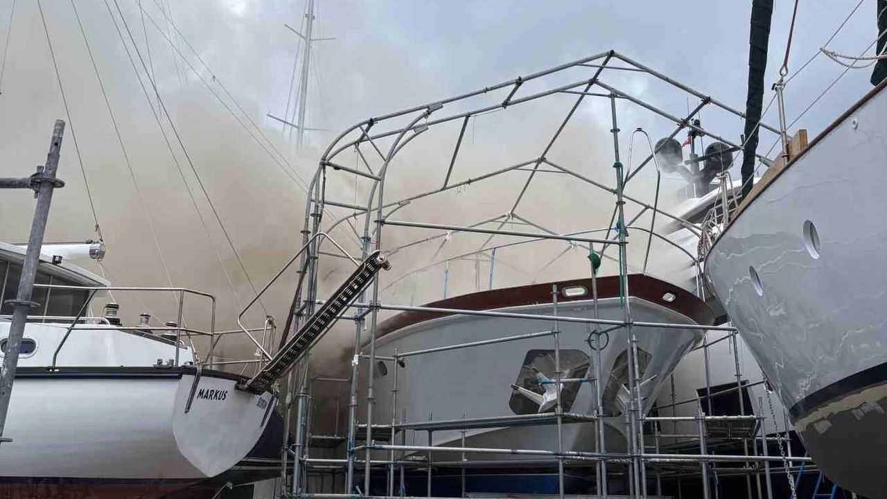 Bakım için karaya alınan 22 metre uzunluğundaki motoryatta, iddiaya göre bir patlamanın ardından yangın başladı.