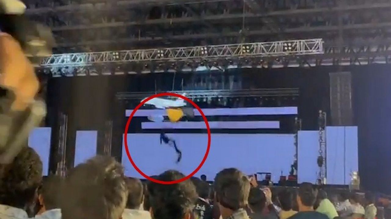 Shah ve Datla’yı taşıyan kafes benzeri yapıyı tutan halatlardan biri koptu ve ikili 15 metre yükseklikten sahneye düştü.