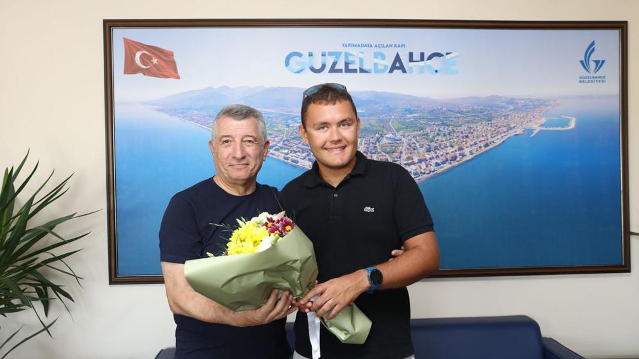 Güzelbahçe’de yaşayan otizmli ultra maraton yüzücüsü Tuna Tunca, Manş Denizi’ni geçme hazırlıkları kapsamında Güzelbahçe Belediye Başkanı Mustafa Günay’ı ziyaret etti. Ziyarette, Tuna Tunca’nın annesi Gülnur Tunca da hazır bulundu. Başkan Günay, Tunca’ya destek sözünü verdi.