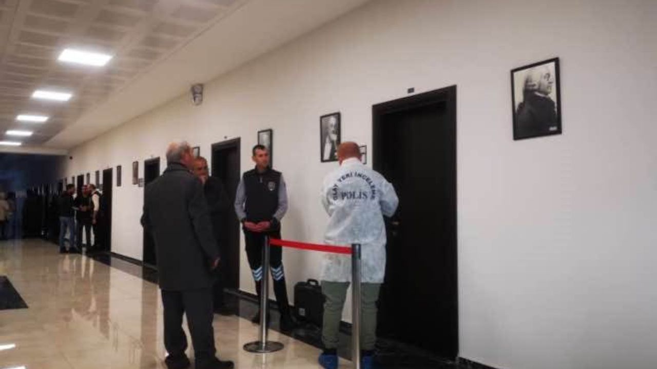 Polis ekipleri, odada detaylı incelemelerde bulunurken, Doç. Dr. Rıdvan Küçükali’nin kalp krizi geçirmiş olabileceği üzerinde duruluyor.