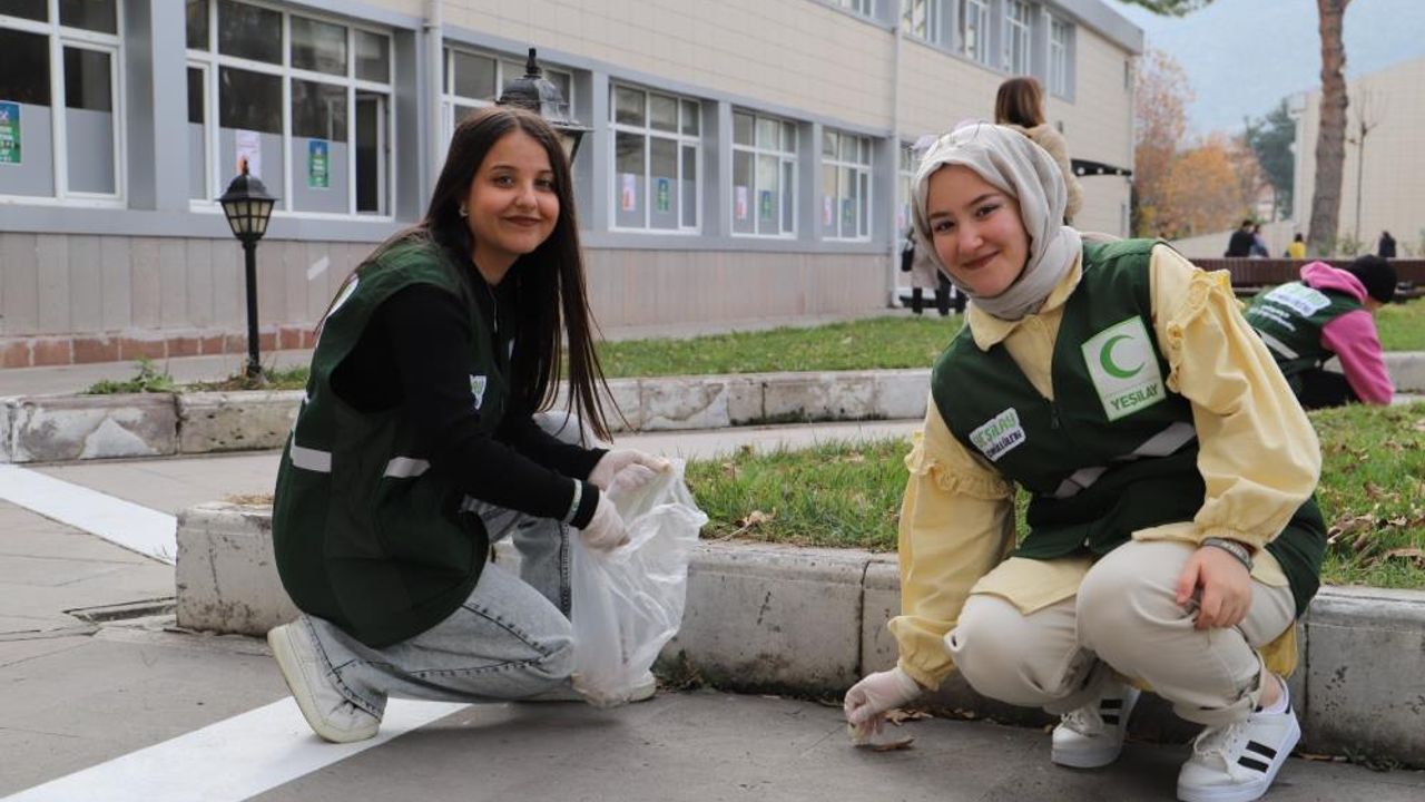 Üniversitenin Yeşilay ve Kalite kulüplerinin işbirliğiyle gerçekleşen etkinlikte arkadaşlarıyla birlikte izmarit toplayan Yeşilay Amasya Şubesi