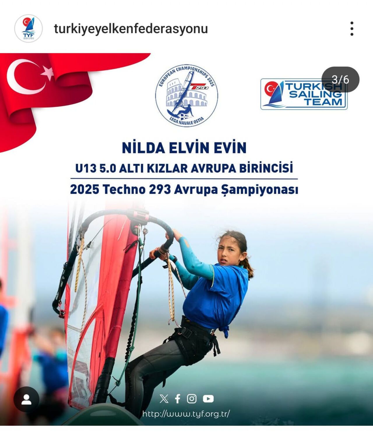 Göztepe Spor Kulübü Yelken Şubesi adına yarışan Nilda Elvin Evin, U13 5.0 Altı Kızlar kategorisinde sergilediği üstün performansla Avrupa Şampiyonu unvanını kazandı ve altın madalyanın sahibi oldu. Genç yaşına rağmen Avrupa’nın zirvesine çıkmayı başaran Evin, hem Urla’yı hem de Türkiye’yi gururlandırdı.