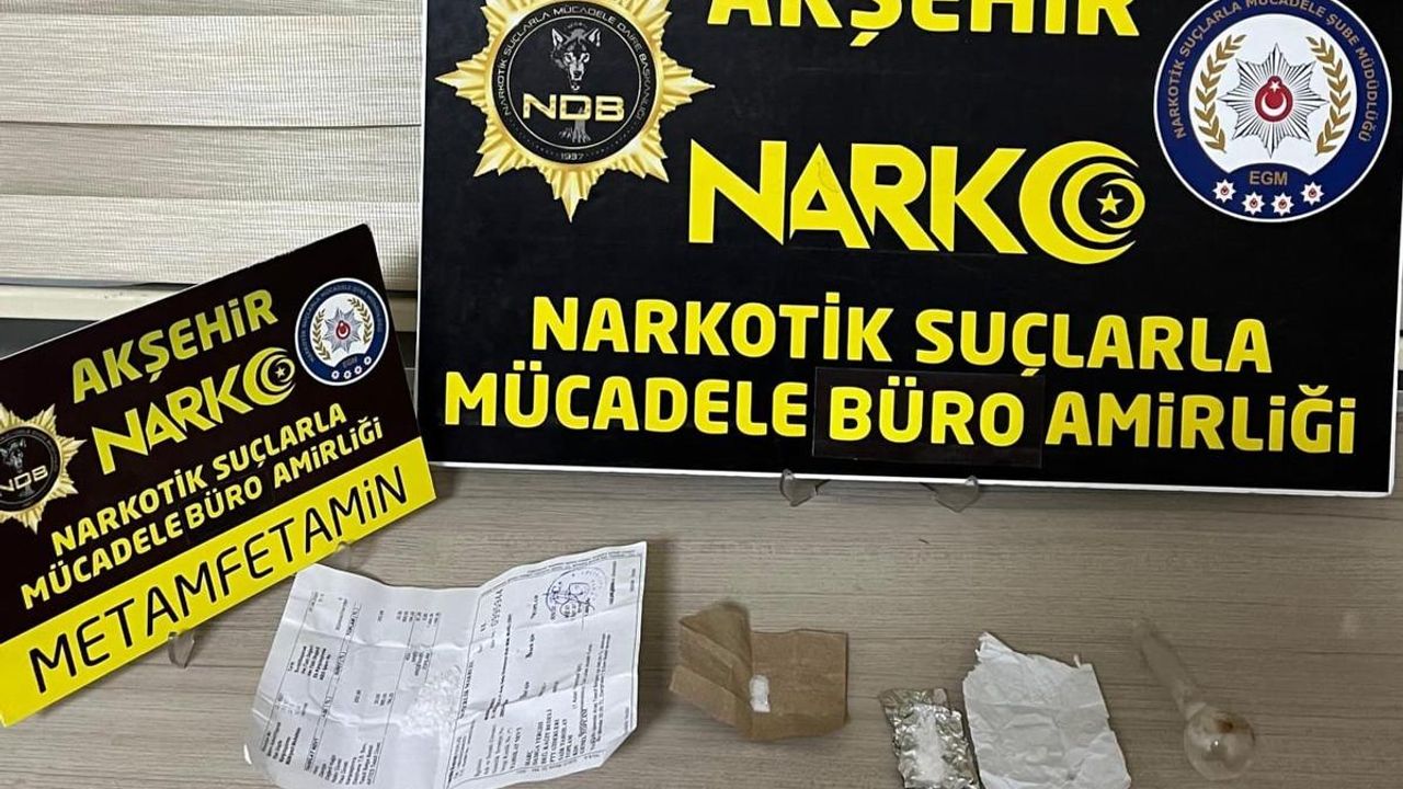 Akşehir İlçe Emniyet Müdürlüğü Narkotik Suçlarla Mücadele Büro Amirliği ekipleri sokak satıcılığı yapan, uyuşturucu madde kullanan ve sevk eden şahıslarla ilgili yaptığı istihbarı çalışmalar kapsamında; iki araç üzerinde yaptığı uygulamada N.K., H.C.E. ve İ.Ö. isimli 3 şahıs yakalandı. Şahısların üzerlerinde ve araçlarında yapılan aramalarda dört parça halinde 6,5 gram metamfetamin, 9 adet uyuşturucu hap ile 1 adet uyuşturucu kullanma aparatı ele geçirildi.