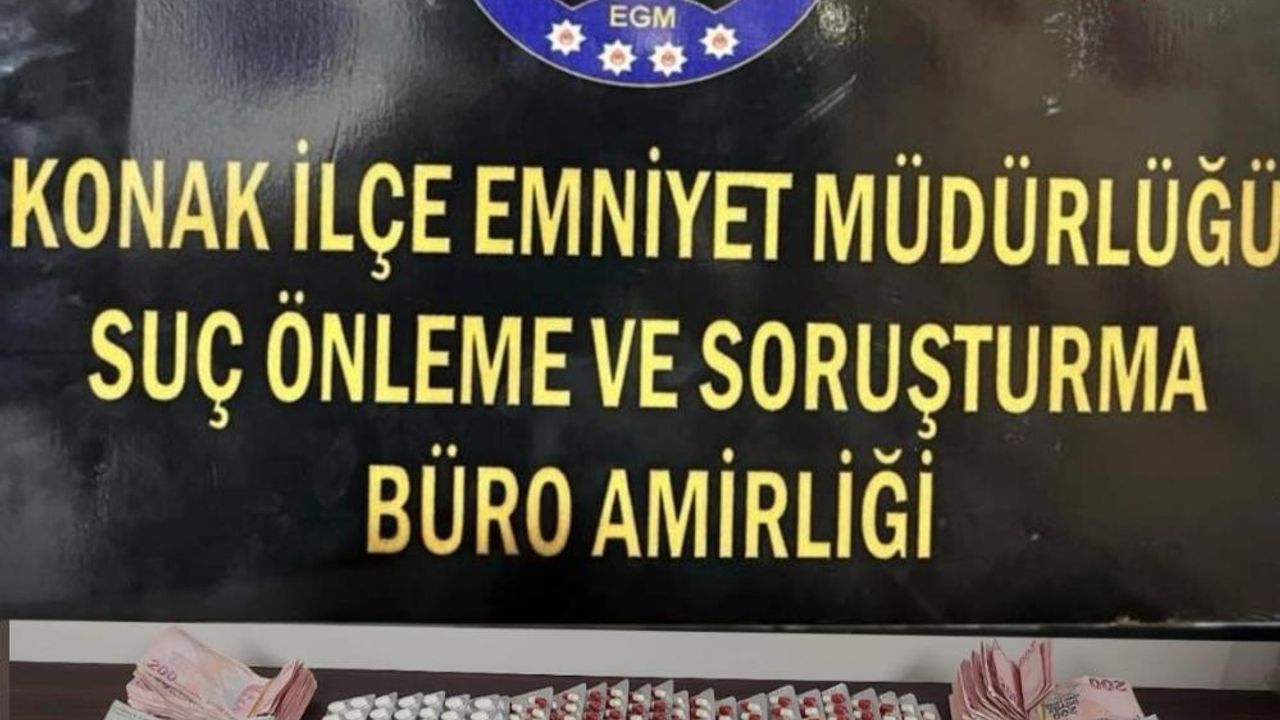 Konak İlçe Emniyet Müdürlüğü Narkoalan Timleri ve Suç Önleme ve Soruşturma Büro Amirliği ekipleri, Yenişehir ve Çimentepe bölgelerinde uyuşturucu ticareti yaptığı belirlenen adresleri takibe aldı. Cumhuriyet Başsavcılığı koordinesinde adreslere gerçekleştirilen baskında 541 yeşil reçeteye tabi sentetik ecza ürünü, 4 ruhsatsız tabanca, 36 tabanca mermisi, 41 Kalaşnikof marka tüfek fişeği ile uyuşturucu ticaretinden elde edilen 65 bin 580 lira ele geçirildi. Olayla ilgili gözaltına alınan R.Ö. ve S.A., emniyetteki işlemlerinin ardından çıkarıldıkları mahkemece tutuklandı.