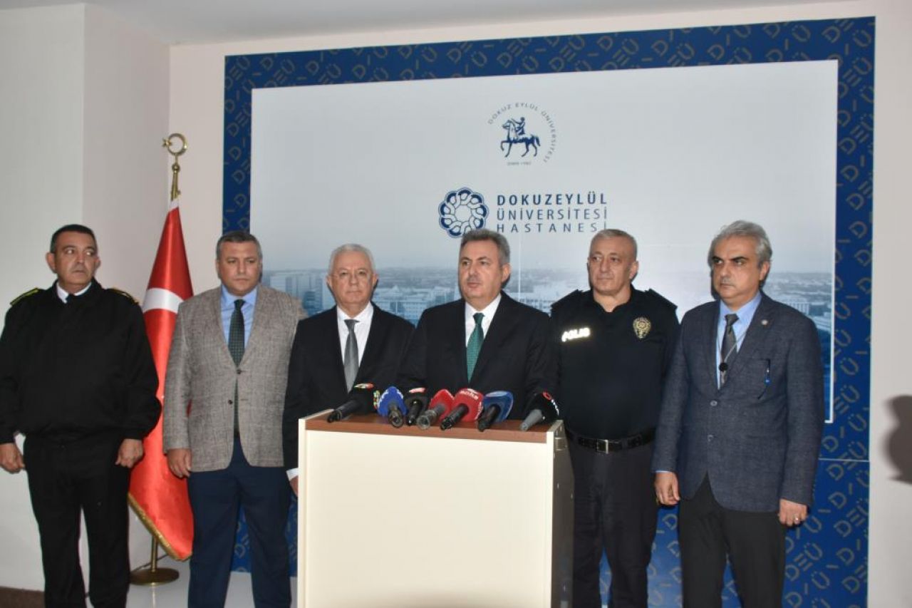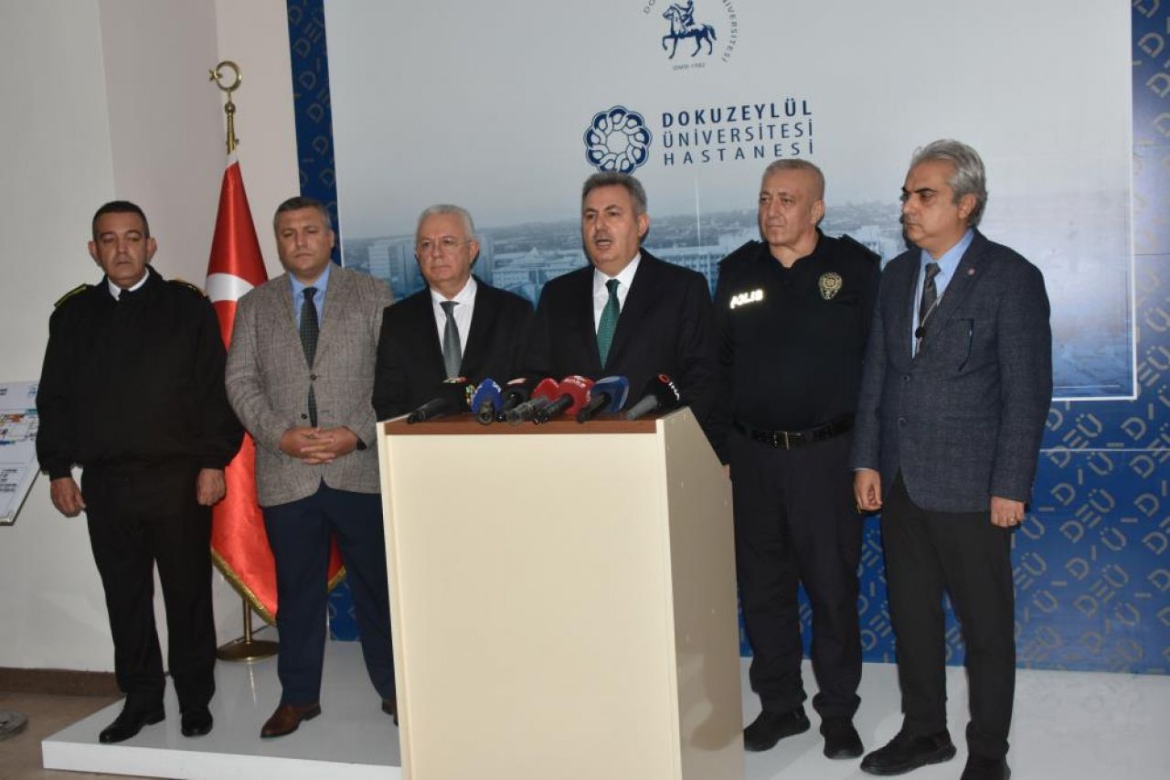 Vali Elban, Dokuz Eylül Üniversitesi Hastanesi'nde tedavi gören polis memurları Mehmet Tozun ve İbrahim Gümüştekin'in durumu hakkında bilgi verdi. Tedavi süreçlerinin hızla ilerlediğini ve iki polis memurunun hayati tehlikeyi atlattıklarını ifade eden Vali Elban, . "Dokuz Eylül Tıp Fakültesi Hastanesi'ne İbrahim Gümüştekin ve Mehmet Tozun'un geldiğinde hayati tehlikeleri vardı. Üniversitedeki hocalarımız çok süratli bir şekilde tetkiklerini yapıp arkadaşlarımızı ameliyata aldılar. Yaklaşık 30-40 dakika önce her iki arkadaşımız da uyandı. Şu anda bilinçleri açık ve her iki arkadaşımız da çok şükür hayati tehlikeyi atlatmış durumdalar. Rabbim onları ailelerine ve polis teşkilatımıza ve milletimize bağışladı. İki arkadaşımızın da şu anda yoğun bakımda tedavi süreçleri devam ediyor. İnşallah kısa bir süre içerisinde servise alınıp sonra da taburcu edilecekler" şeklinde konuştu.