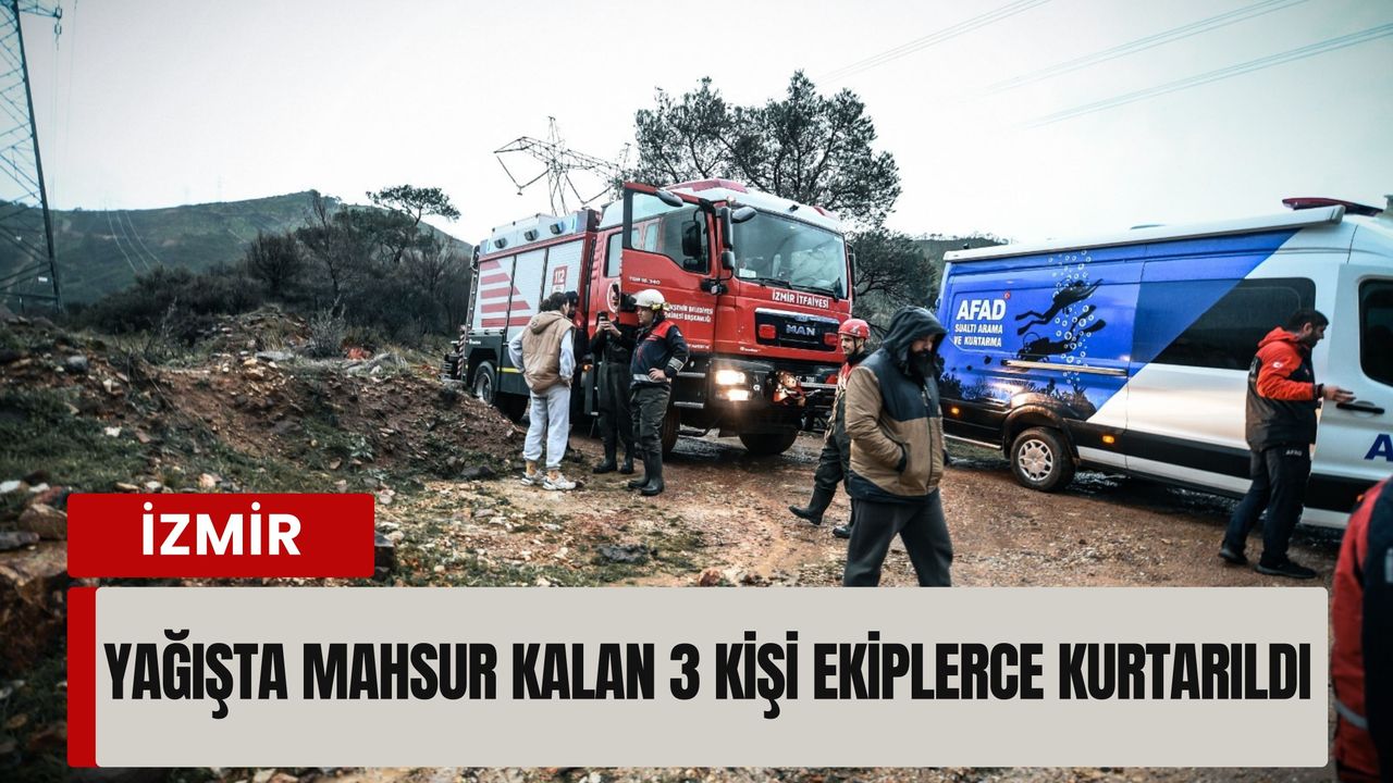 İzmir’de etkili olan sağanak yağışların yol açtığı sel ve su baskınlarına karşı sahada görev yapan İzmir Büyükşehir Belediyesi İtfaiye Dairesi Başkanlığı ekipleri, Karşıyaka Yamanlar Mesire Alanı’nda mahsur kalan 3 kişiyi kurtardı.