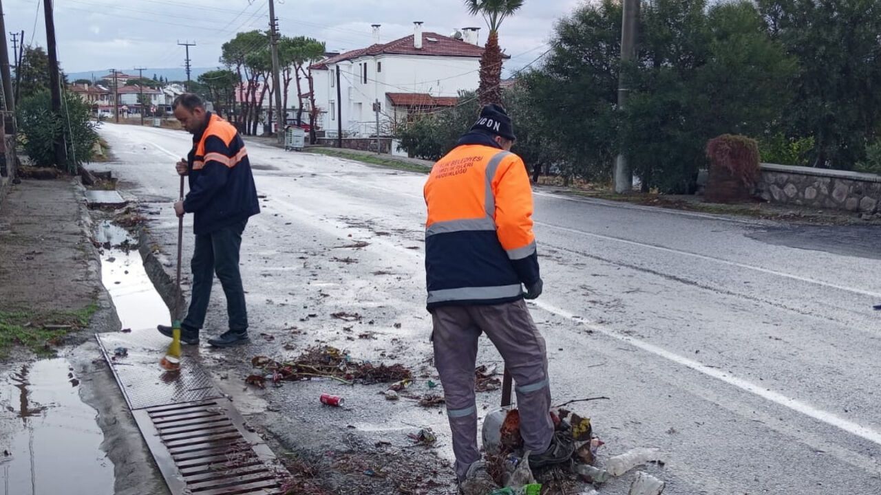 Körfez bölgesi ve Ayvalık'ta geçtiğimiz hafta içinde yoğun bir şekilde devam eden yağışların ardından, kent içinde oluşan yaprak, dal, kum ve çöp birikintileri, Ayvalık Belediyesi Temizlik İşleri Müdürlüğü ekipleri tarafından temizlendi.