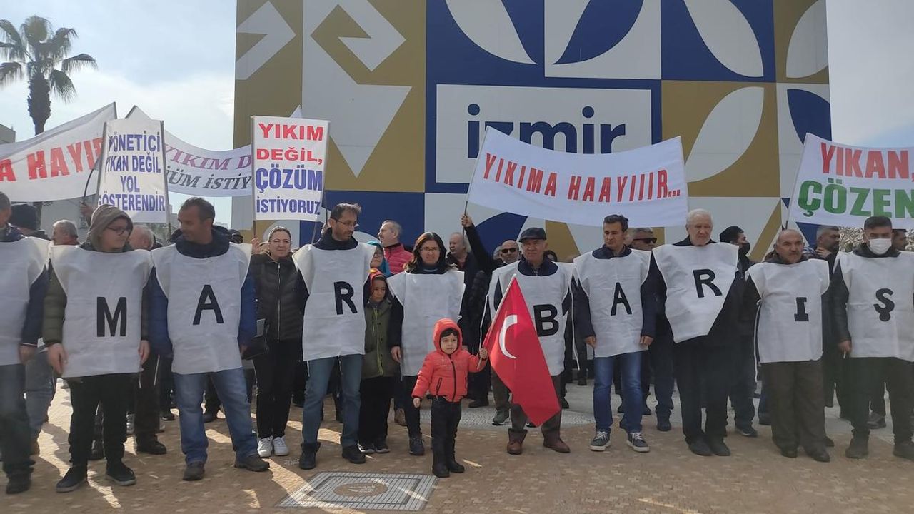 Konak Meydanı’nda bir araya gelen İmar Yasasına Takılanlar Derneği üyeleri, yapı kayıt mağduriyetlerinin giderilmesi için seslerini yükselttiler.