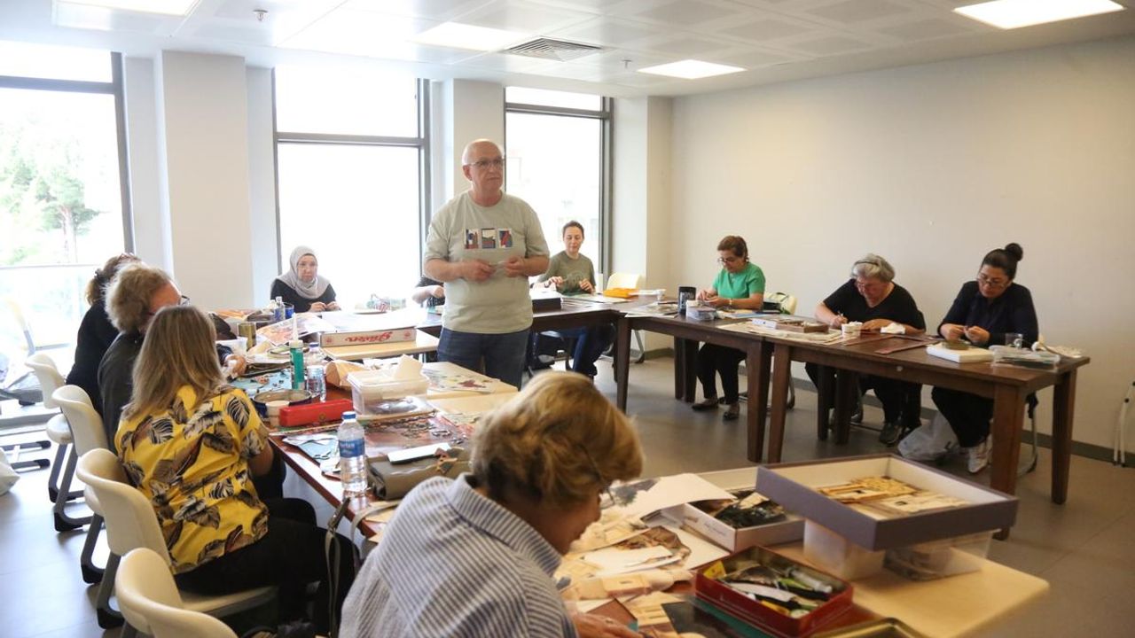 Prof. Dr. İsmail Aka Kütüphanesi ve Sosyal Etkinlik Merkezi’nde düzenlene kurslardan Kat’ı Sanatı kursu kadınların yoğun katılımıyla devam ediyor. Kurslara katılarak üretmenin keyfini yaşadıklarını belirten kursiyerlere göre kat’ı sanatı kursu terapi özelliği de taşıyor.