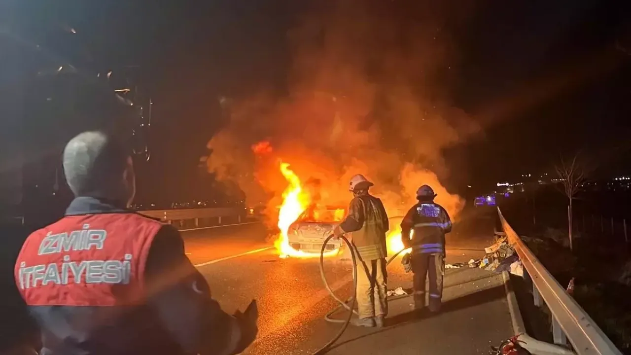 Yangın, Menemen Otoyolu’nda gece saat 00.10 sıralarında meydana geldi. Edinilen bilgiye göre, sürücüsünün adı açıklanmayan bir otomobil seyir halindeyken motor kısmından dumanlar yükselmeye başladı. Dumanların ardından kısa sürede alevler tüm aracı sardı.