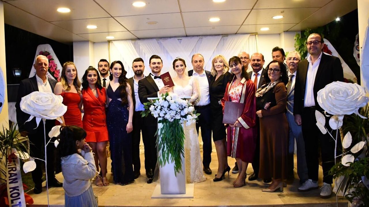 İzmir’in Menderes ilçesinde gerçekleştirilen yılın düğününe üst düzey katılım gerçekleşti. Menderes Belediyesi Beyaz Kır Düğün Salonu’ndaki törende davetliler soğuk havaya rağmen yer bulmakta hayli zorlandı.