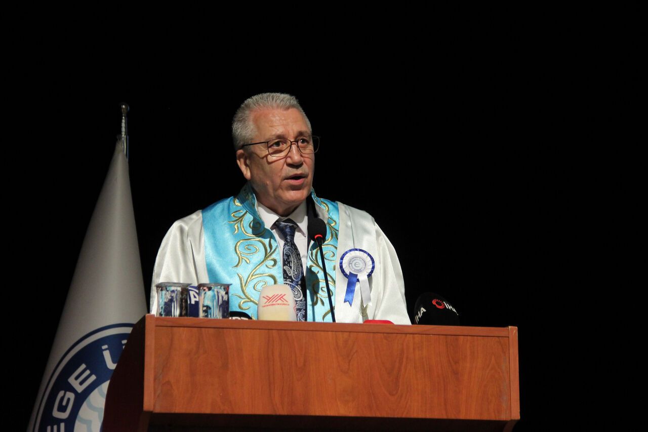 Törende konuşma yapan Ege Üniversitesi Rektörü Prof. Dr. Necdet Budak, Ege Üniversitesinin dijitalleşmeden uluslarasılaşmaya engelsiz üniversiteden yeşil ve spor dostu kampüse kadar Türk yükseköğretim sistemine birçok alanda örnek olan öncü bir üniversite olduğunun altını çizdi. Rektör Budak, "Dijitalleşme hedefimiz doğrultusunda Türkiye’nin dört siber güvenlik yüksekokulundan birisi üniversitemiz bünyesinde kuruldu. YÖK’ün Yapay zekâ, dijitalleşme ve büyük veri kapsamında yaptığı çalışmalar neticesinde üniversitemizde Bilgisayar ve Bilişim Bilimleri Fakültesi kuruldu. Fakülte bünyesinde ise Yapay Zekâ ve Makine Öğrenmesi lisans programı bir sonraki eğitim öğretim döneminde öğrenci alımına başlayacak. Ayrıca, Ege Meslek Yüksekokulu bünyesinde Otonom Sistemler Teknikerliği, Oyun Geliştirme ve Programlama ile Önyüz Yazılım Geliştirme ön lisans programlarımız da faaliyete geçti. Alanında ilk ve tek olan Türkiye’nin en büyük prototipleme merkezi olan Ege Derin Teknoloji Fabrikasının açılışını gerçekleştirdik. Üniversitemizin kuruluşunun 70. Yılında Ege Teknopark’ı genişletiyoruz. 18 bin metrekare alana 1000 firmanın yer alabileceği bir teknopark haline getiriyoruz. EÜ’nün Araştırma Üniversitesi başarısına kavuşması ile birlikte önemli kazanımlarından biri norm kadro uygulamasının kaldırılması oldu. Böylece yılların birikimi olan kadro sorununa köklü çözümler ürettik. Bugün tüm akademik birimlerimizde kadro sorunu artık ortadan kalkmış durumda" sözlerine yer verdi.