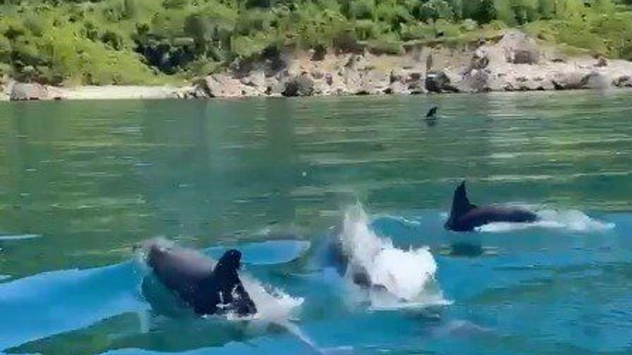 Yunusların tekneye “kılavuz kaptanlık” yaptığı anlar cep telefonu kamerasıyla kaydedildi.Kastamonu’nun Cide ilçesinde Denikkonak köyü açıklarında seyreden balıkçı teknesine yunus balıkları eşlik etti. Tekneyle yarışan yunusların o anları cep telefonu kamerasıyla kayıt altına alındı. Yunusların tekneyle birlikte hareket ettiği anlar görsel şölen oluşturdu. Karadeniz’e açılan Emre Yavuz’un kaydettiği görüntülerde, yunus balıkları bir süre tekneye eşlik ettikten sonra gözden kayboldu.