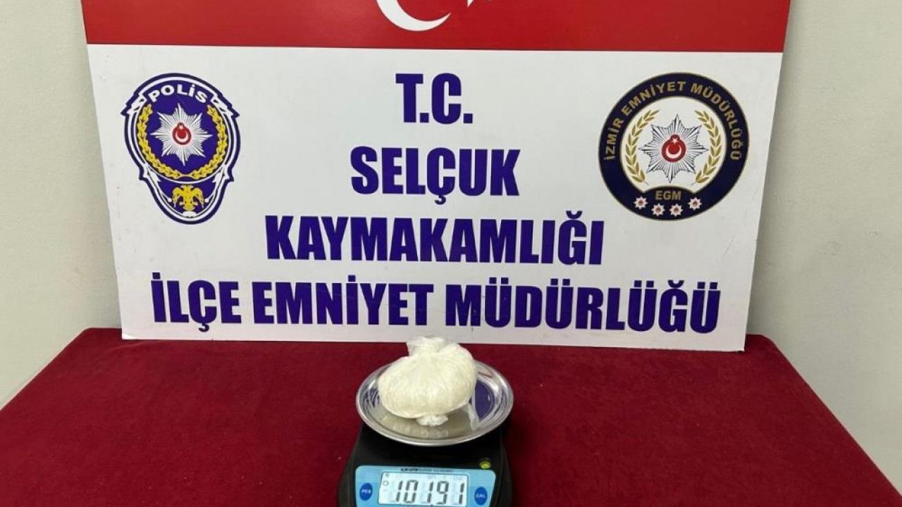 Selçuk İlçe Emniyet Müdürlüğü Suç Önleme ve Soruşturma Büro Amirliği, Selçuk Cumhuriyet Başsavcılığı koordinasyonunda uyuşturucu madde ticaretine yönelik operasyon düzenledi. Operasyon kapsamında, şüphelinin üzerinde yapılan aramada toplamda 247,83 gram metamfetamin bulundu. Ele geçirilen uyuşturucu madde ile ilgili olarak, şüpheli gözaltına alındı.